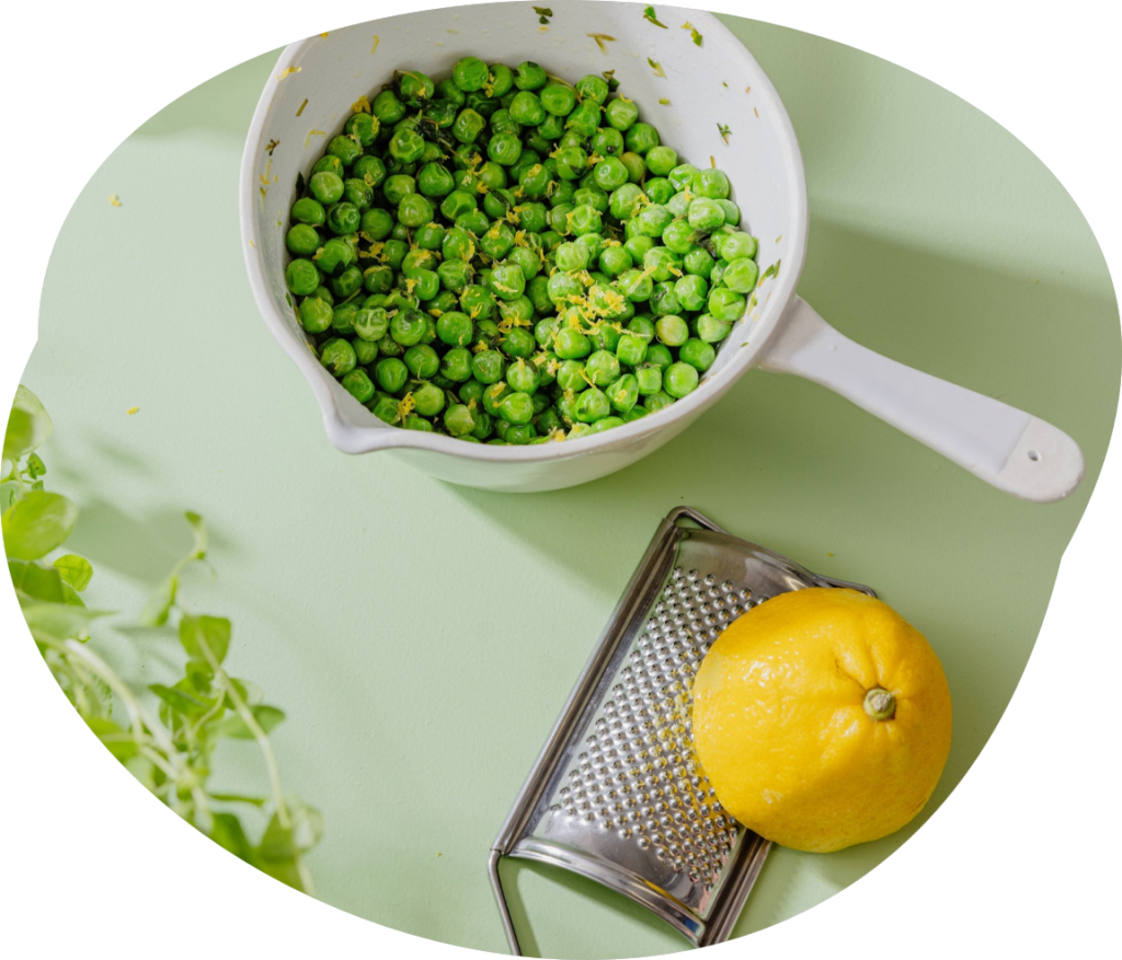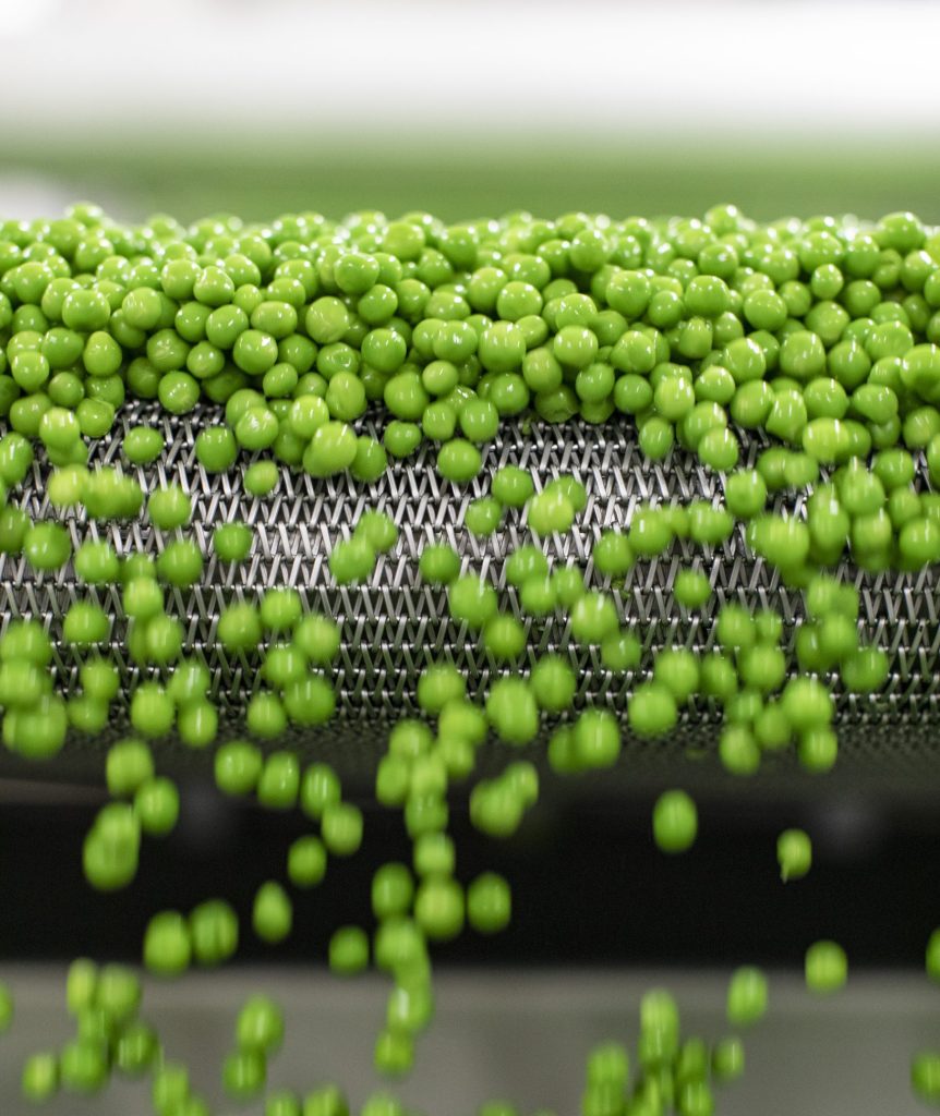 Gentle blanching and rapid freezing in a fluidised-bed freezer ensure the pea’s preservation and nutritional value.